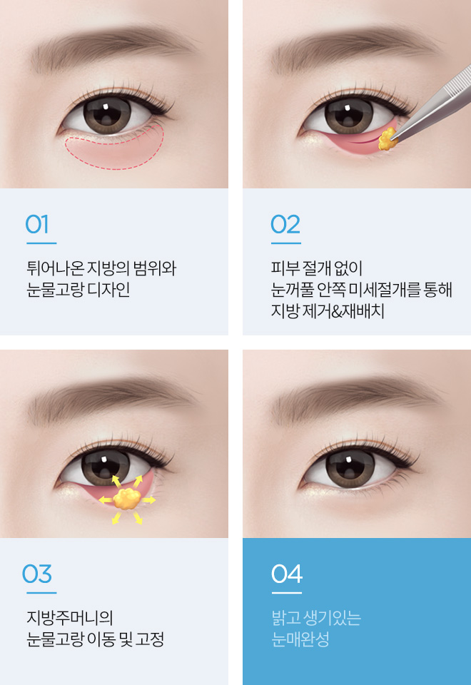 연세로운성형외과의 눈밑지방재배치 수술방법