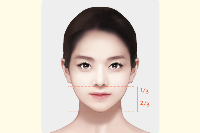 이상적인 인중의 비율은 턱 길이의 ½ 비율이며